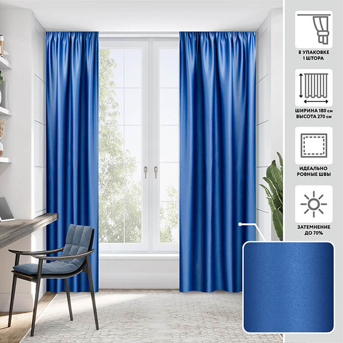 Портьера блэкаут МИРТЕК NOTTE 180х270 1 шт (цвет 15 вечерний синий)
