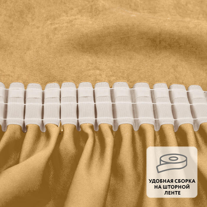 Ровные складки образуются благодаря удобной шторной ленте, пришитой по верхнему краю.