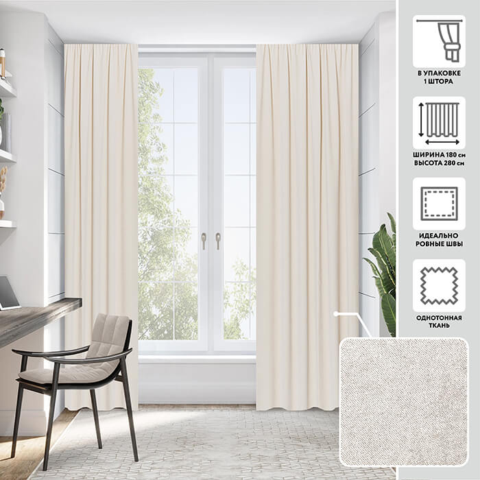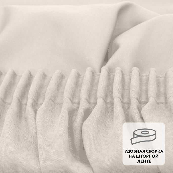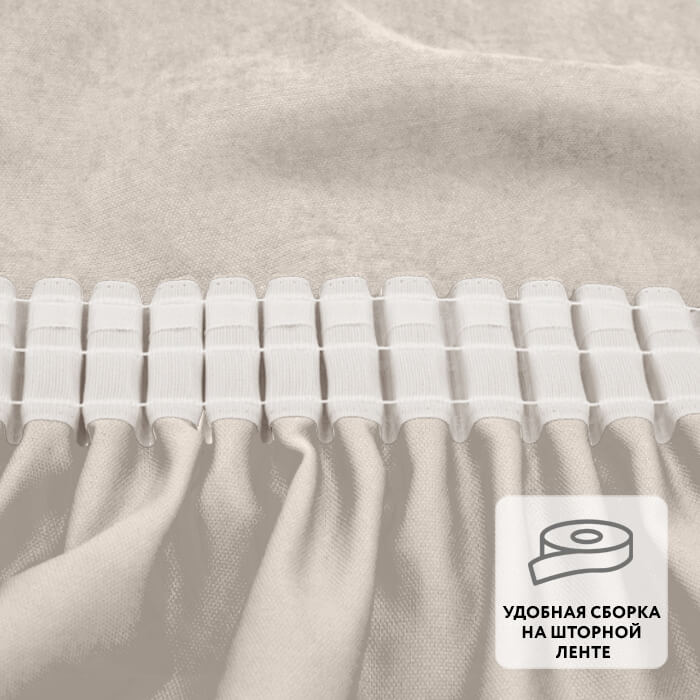 Ровные складки образуются благодаря удобной шторной ленте, пришитой по верхнему краю.