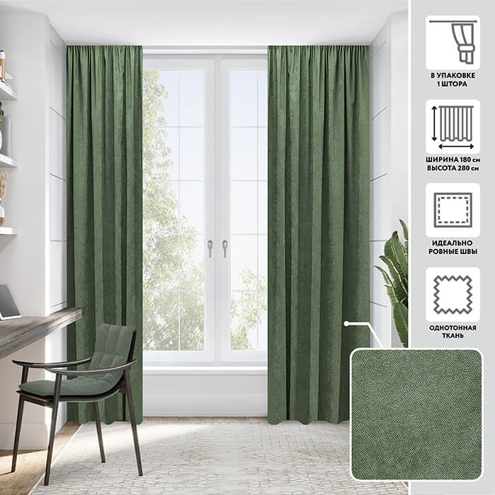 Портьера МИРТЕК MADRAS 180х280 1 шт (цвет 263214 сухая хвоя (оттенок 1))