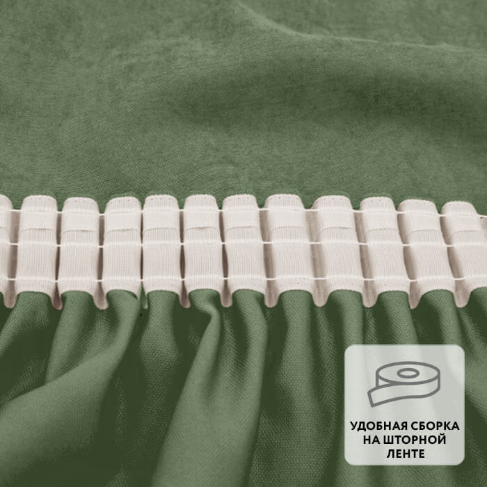 Ровные складки образуются благодаря удобной шторной ленте, пришитой по верхнему краю.