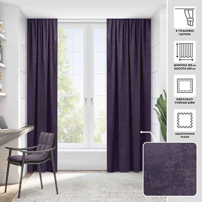 Портьера МИРТЕК MADRAS 180х280 1 шт (цвет 1403/223 чернослив)