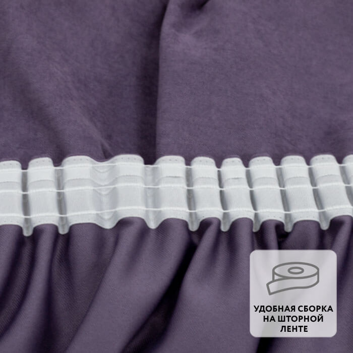 Ровные складки образуются благодаря удобной шторной ленте, пришитой по верхнему краю.