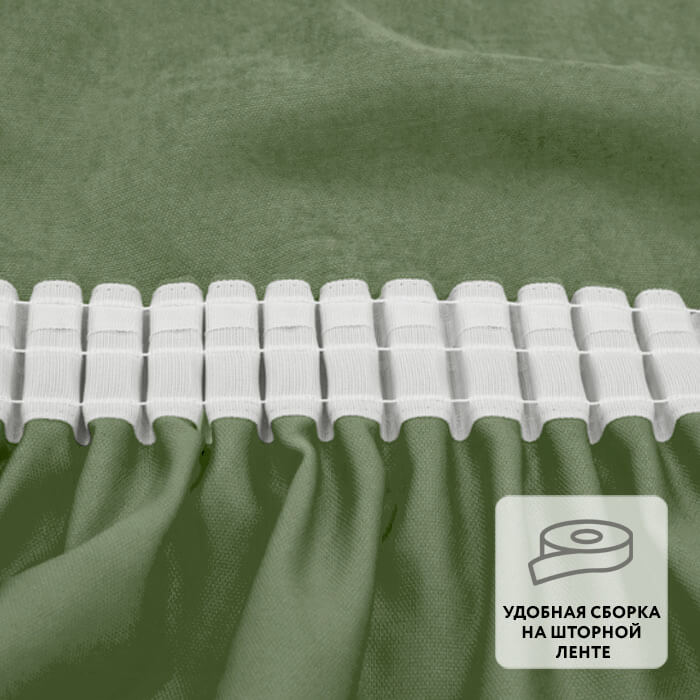 Ровные складки образуются благодаря удобной шторной ленте, пришитой по верхнему краю.