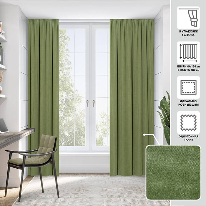 Портьера МИРТЕК MADRAS 180х280 1 шт (цвет 31 спаржевый)