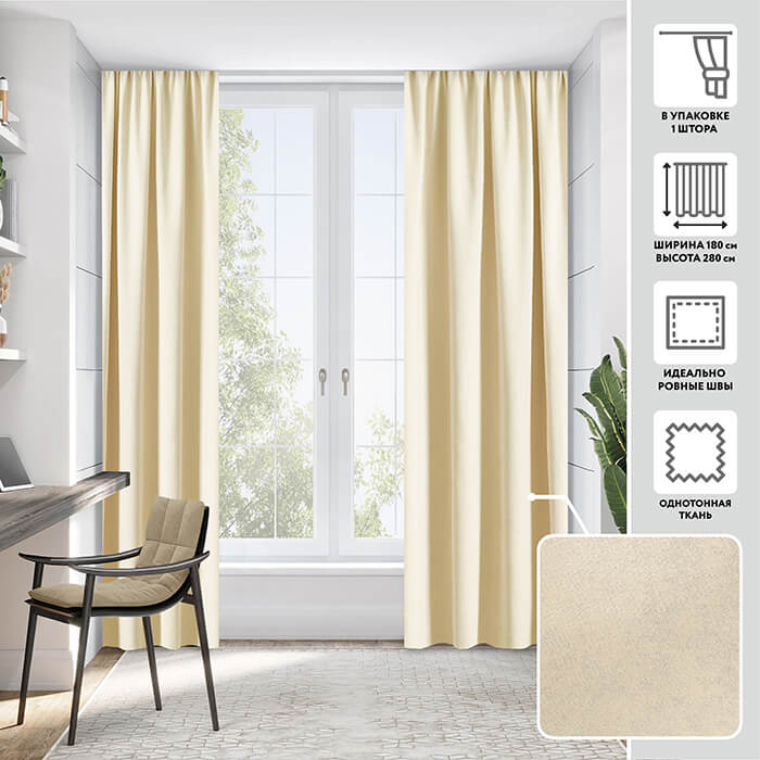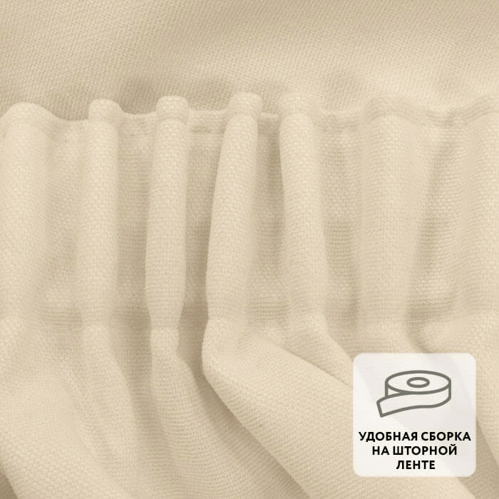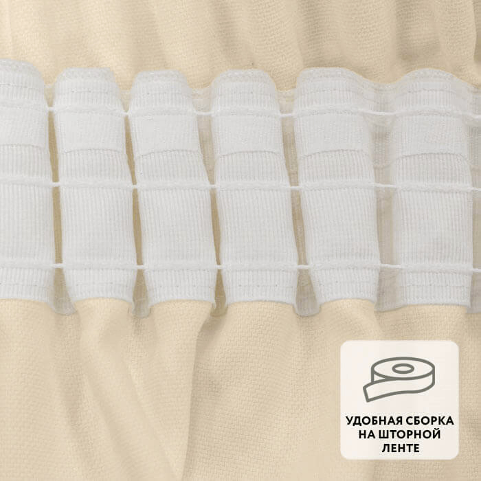 Ровные складки образуются благодаря удобной шторной ленте, пришитой по верхнему краю.