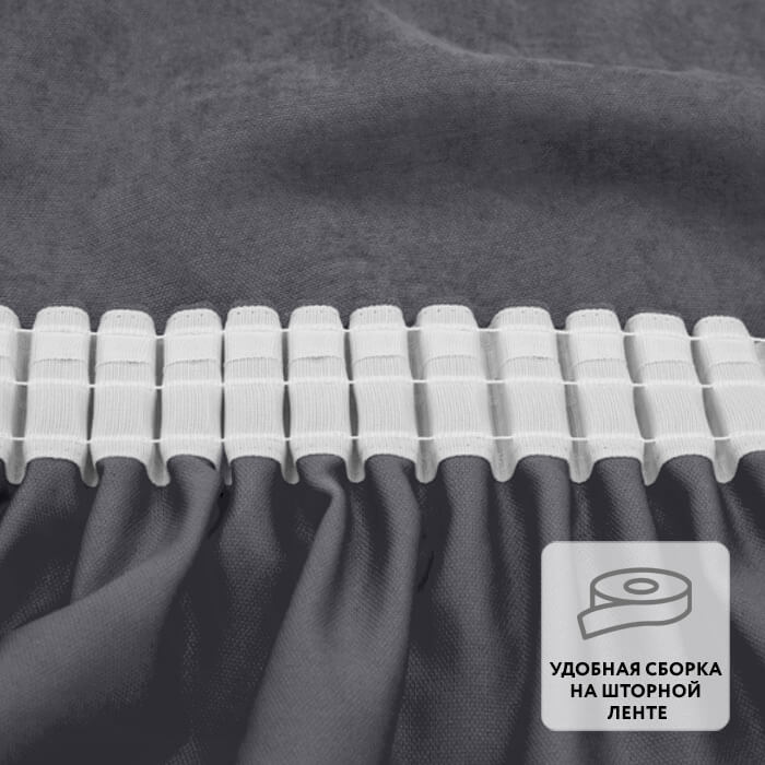 Ровные складки образуются благодаря удобной шторной ленте, пришитой по верхнему краю.