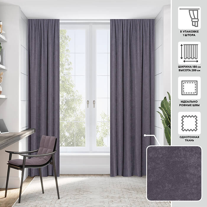 Портьера МИРТЕК MADRAS 180х280 1 шт (цвет 267281 грифельный серый)