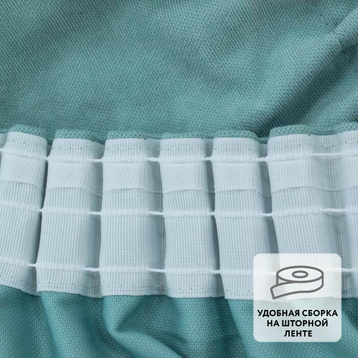 Ровные складки образуются благодаря удобной шторной ленте, пришитой по верхнему краю.