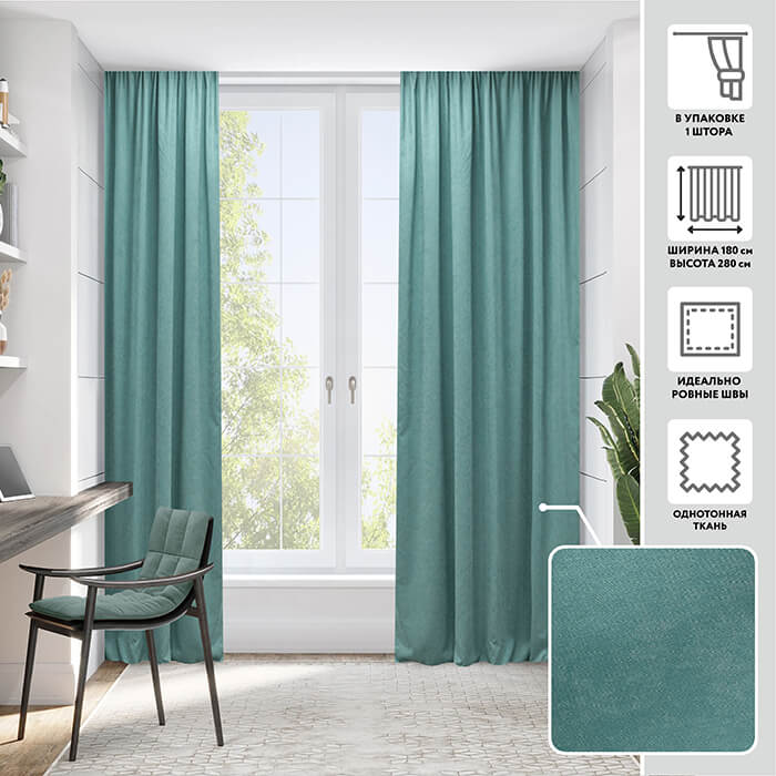 Портьера МИРТЕК MADRAS 180х280 1 шт (цвет пастельно-бирюзовый)