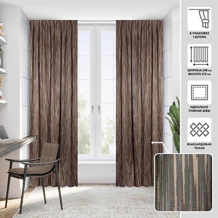 Портьера МИРТЕК FLUTE 200х270 1 шт (цвет 3 ореховый)