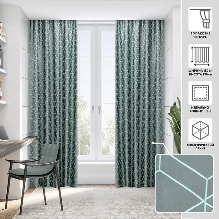 Шторы с геометрическим рисунком - самая горячая тенденция в сезоне 2020-2021! Благородный блеск ткани контрастирует с ломаными линиями орнамента, добавляя динамики и яркости в современный интерьер гостиной, спальни или кабинета. Жаккардовые портьеры отлично сочетаются со множеством вариантов легких полотен, позволяя легко завершить оформление окна!