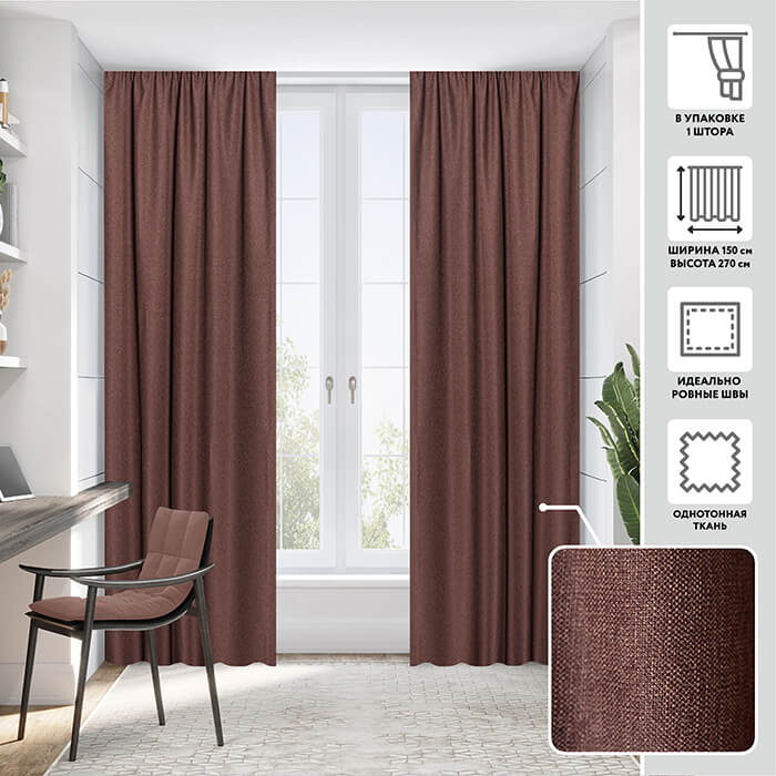 Портьера МИРТЕК GRACE 150х270 1 шт (цвет 25329 шоколад)