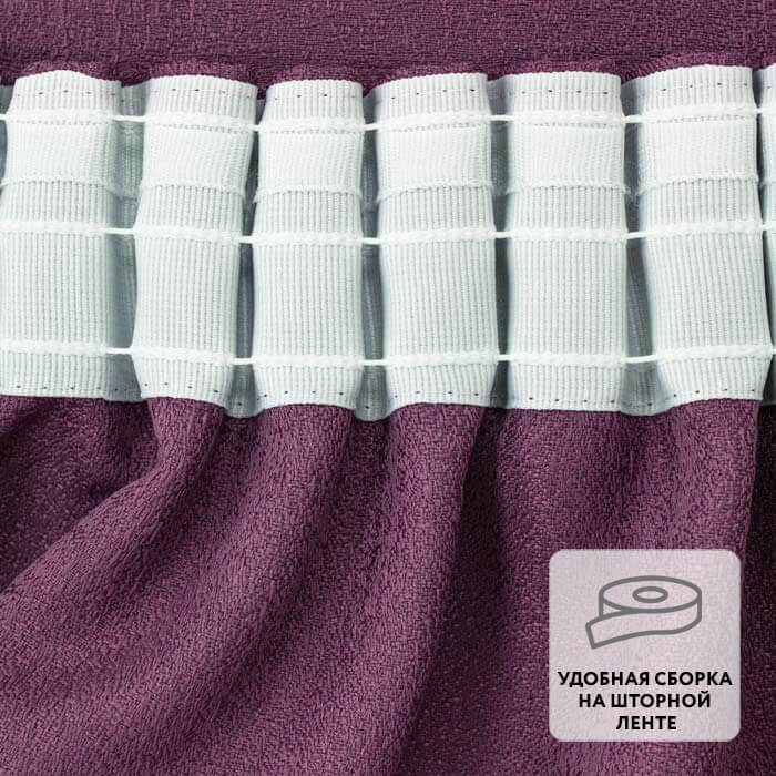 Ровные складки образуются благодаря удобной шторной ленте, пришитой по верхнему краю.
