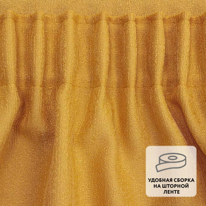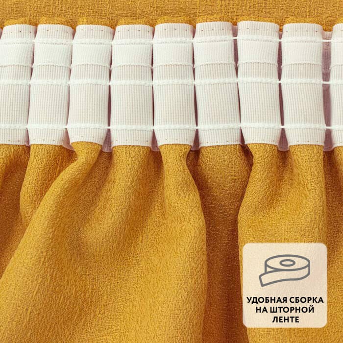Ровные складки образуются благодаря удобной шторной ленте, пришитой по верхнему краю.