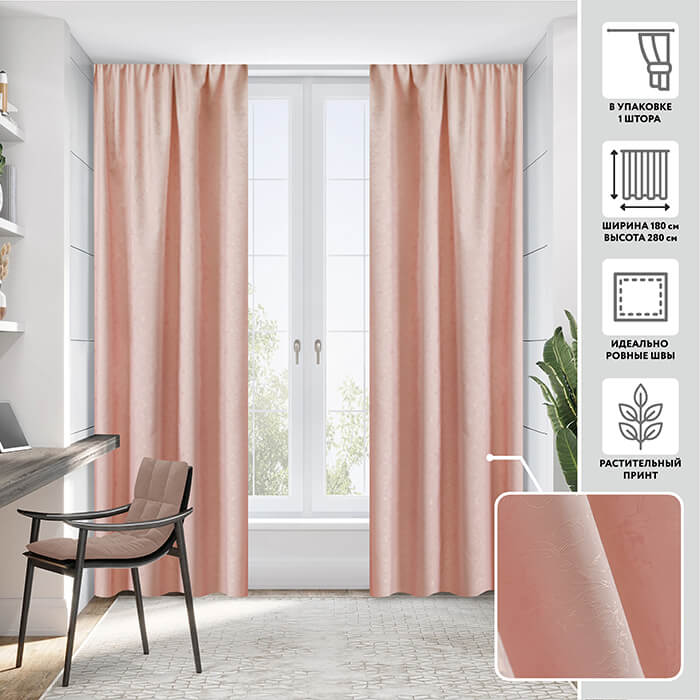 Портьера МИРТЕК KAVALA 180х280 1 шт (цвет 102 рассветный розовый)