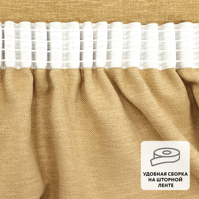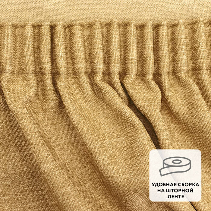 Ровные складки образуются благодаря удобной шторной ленте, пришитой по верхнему краю.