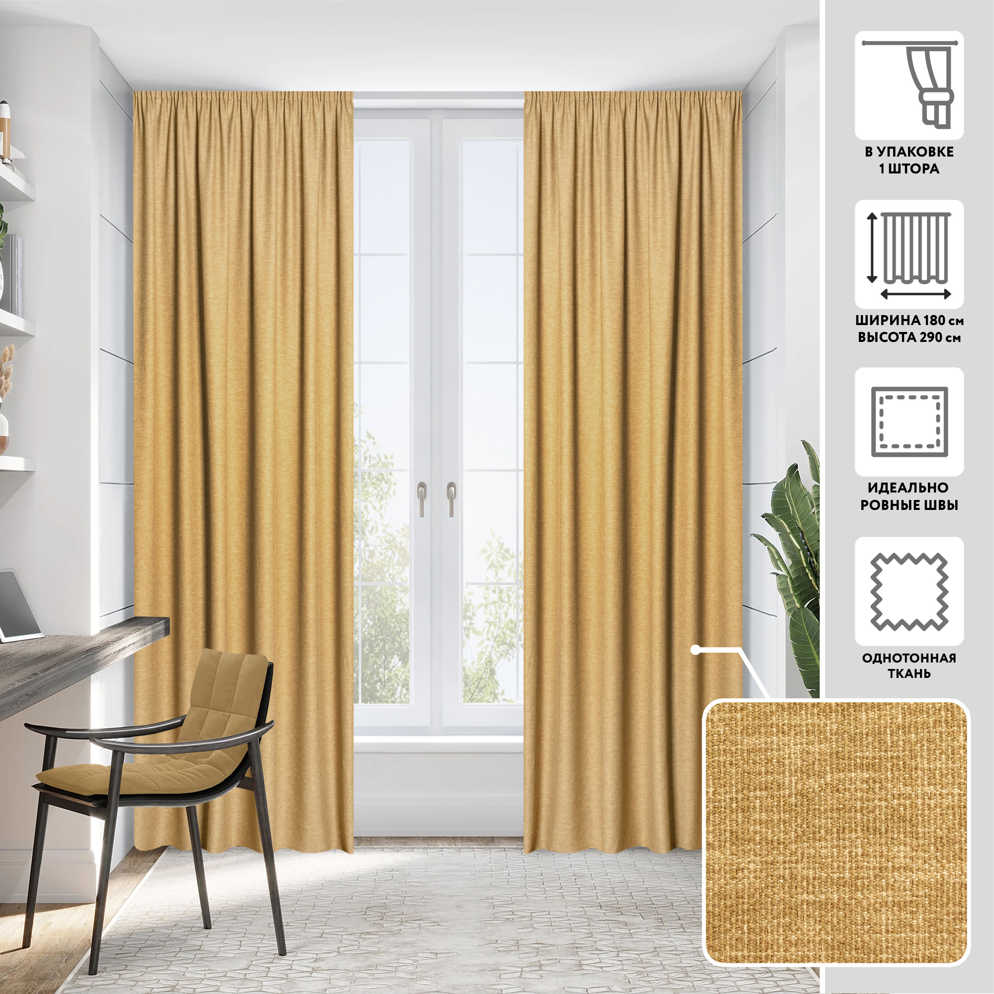 Портьера МИРТЕК HAVANA 180х290 1 шт (цвет латунный)