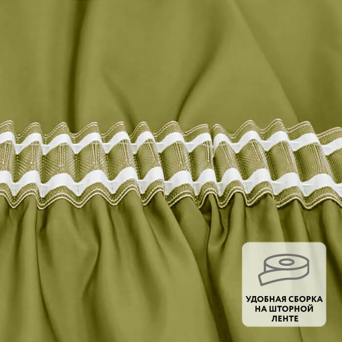 Ровные складки образуются благодаря удобной шторной ленте, пришитой по верхнему краю.