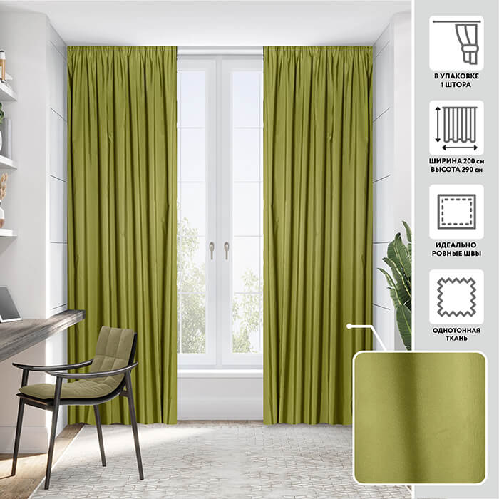 Портьера МИРТЕК TAFTA 200х290 1 шт (цвет 150 яркий зеленый)