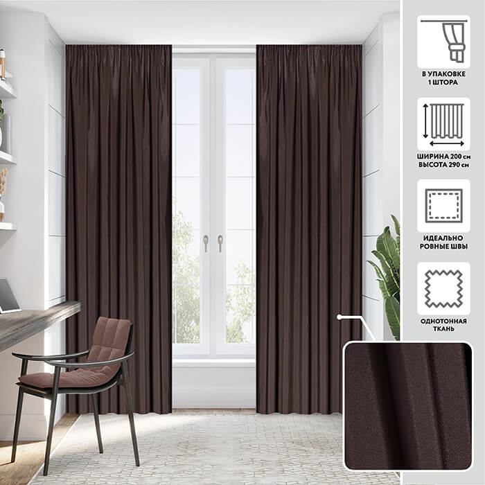 Портьера МИРТЕК TAFTA 200х290 1 шт (цвет 130/1 шоколад)