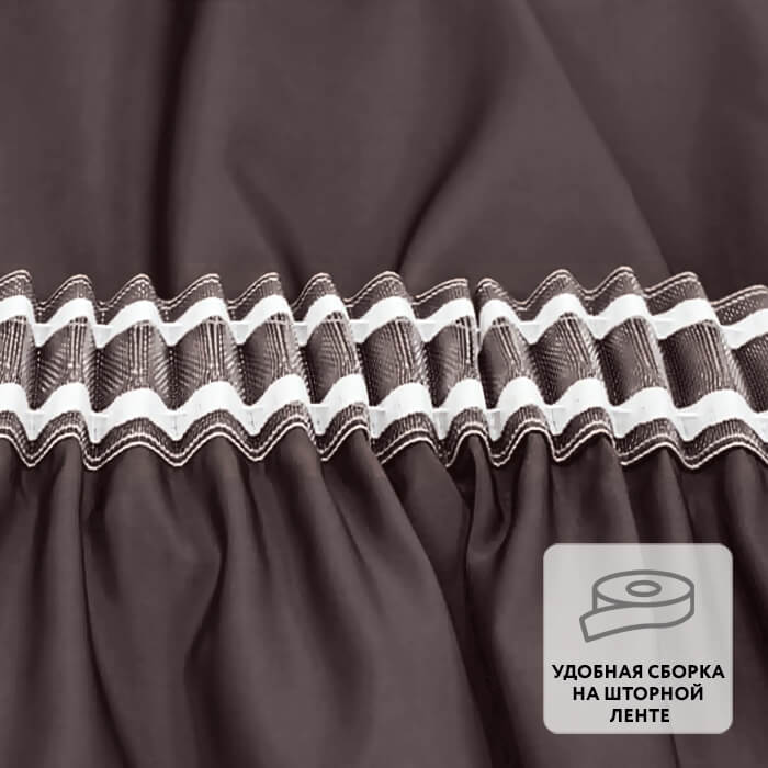 Ровные складки образуются благодаря удобной шторной ленте, пришитой по верхнему краю.