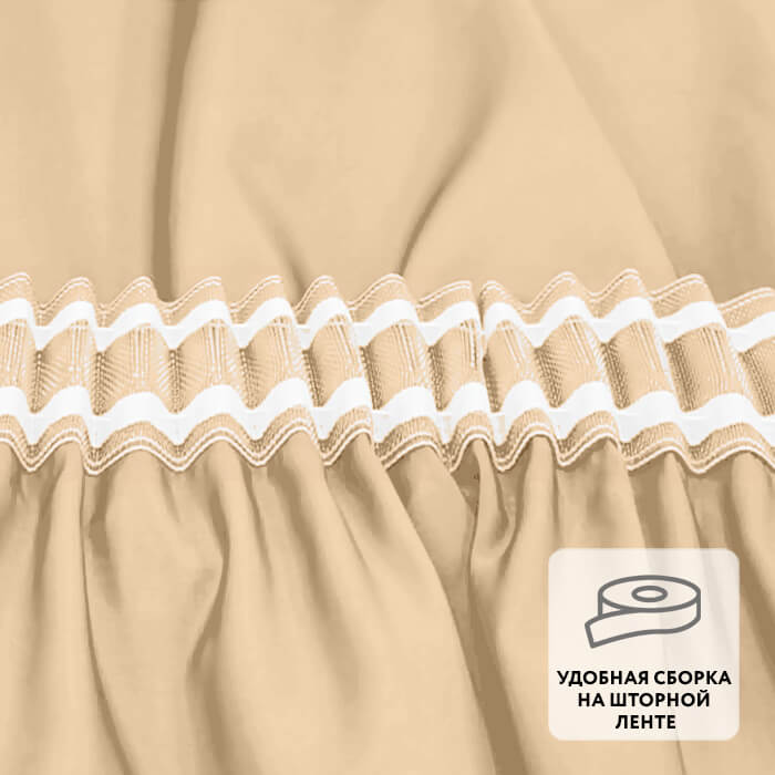 Ровные складки образуются благодаря удобной шторной ленте, пришитой по верхнему краю.