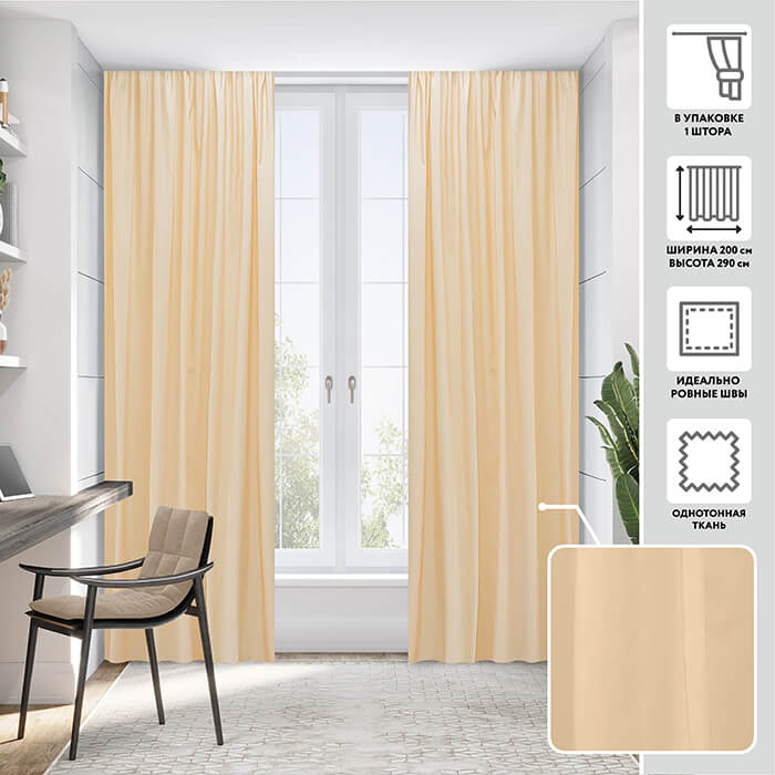 Портьера МИРТЕК TAFTA 200х290 1 шт (цвет 30 персик)