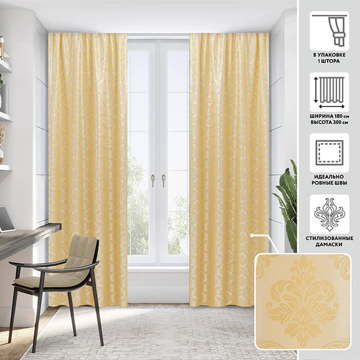 Комплект штор Vienna из нежной жаккардовой ткани украсит интерьер вашей комнаты в стиле современной классики. Мягкая и пластичная атласная ткань замечательно драпируется в складки и хорошо защищает от солнца. Шторы представлены в модных цветовых оттенках.