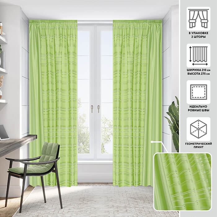 Штора стачная МИРТЕК NETTUNO/BATIDA 210х275 2 шт (цвет 65 зеленое яблоко раппорт 2)