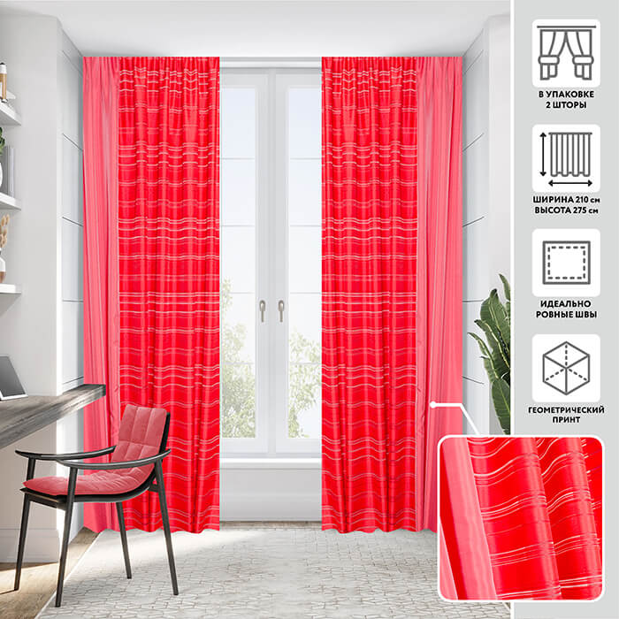 Модный комплект штор, выполненный в технике сочетания тканей-компаньонов, несомненно украсит любой современный интерьер, а сочные оттенки не оставят Вас равнодушными!