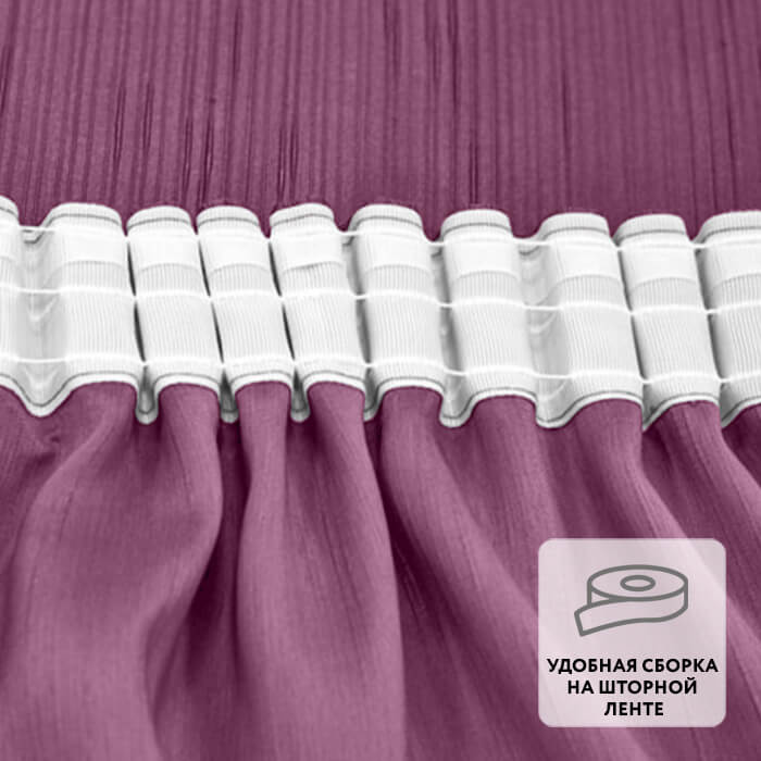 Ровные складки образуются благодаря удобной шторной ленте, пришитой по верхнему краю.