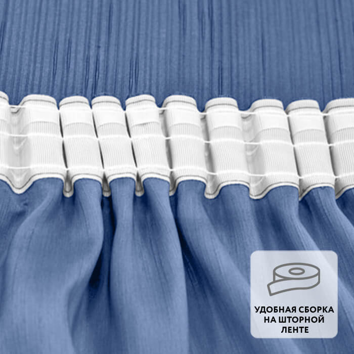 Ровные складки образуются благодаря удобной шторной ленте, пришитой по верхнему краю.
