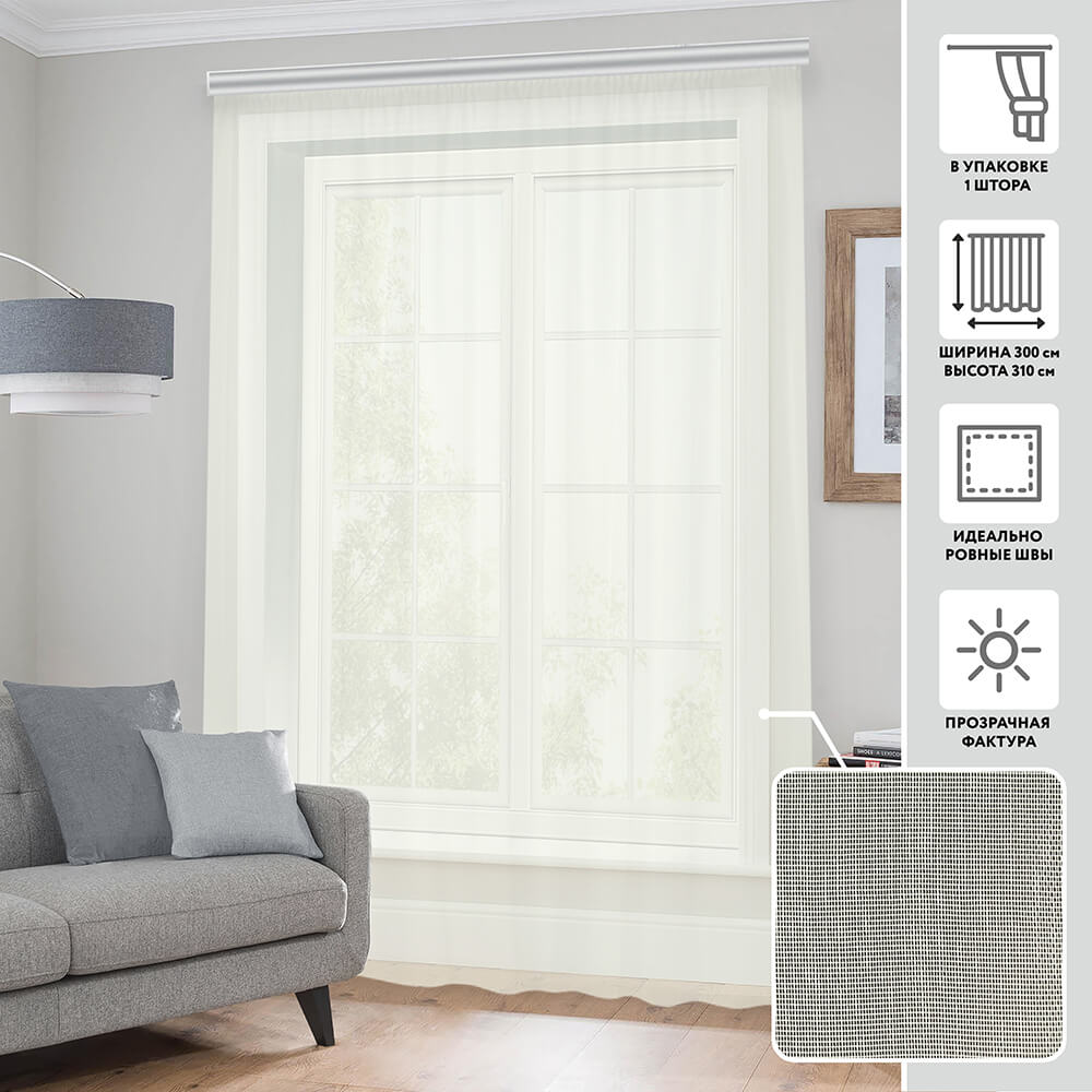 Ажурные шторы из тончайшей мягкой сеточки с фактурой в виде деликатных "штришков" станут изысканной изюминкой Вашего интерьера, в которую невозможно не влюбиться! Легкая ткань этой модели невероятно пластичная, мягкая, с лёгкостью драпируется в красивые складки. Благодаря особой фактуре ткани, полотно практически не мнётся, за ним легко ухаживать, оно не накапливает пыль, не электризуется. Высота полотна 310см позволяет украсить комнату даже с высокими потолками.