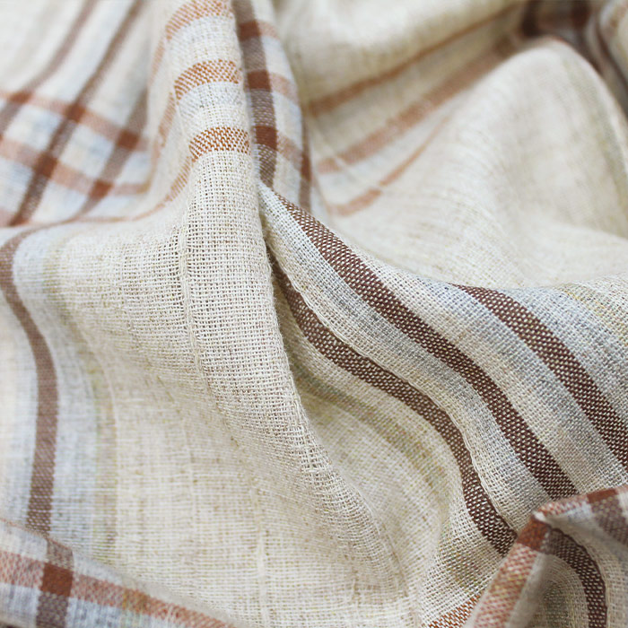 ЛЕН КОСТЮМНЫЙ ш145 100%лен (коричневая/бежевая клетка)