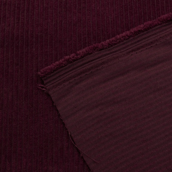 Вельвет представляет собой мягкий, приятный на ощупь материал, имеющий на лицевой поверхности поочередно расположенные продольные ворсовые полоски и бороздки. Вельвет имеет состав из полиэстера, ширину рубчика 4мм и высоту ворса 1мм. Материал обладает прочностью, износостойкостью и малосминаемостью. Вельвет мало подвержен выцветанию, защищает от сырости и ветра, быстро очищается от легких загрязнений. Материал подойдет для пошива платья, рубашки, костюма, брюк, юбки, сарафана, жакета, пиджака и демисезонного плаща. Также вельвет может быть использован для создания развивающих детских игрушек и пошива мягких детских рюкзаков и сумочек. Готовые изделия из крупнорубчикового вельвета разрешено стирать вручную или в стиральной машине на режимах "Ручная стирка" и "Деликатный" в воде с температурой не выше 30 градусов и гелем для стирки деликатных тканей. Вельветовые вещи запрещено тереть, выкручивать и отжимать. Гладить готовые изделия разрешено с изнаночной стороны утюгом с t до 110 градусов.