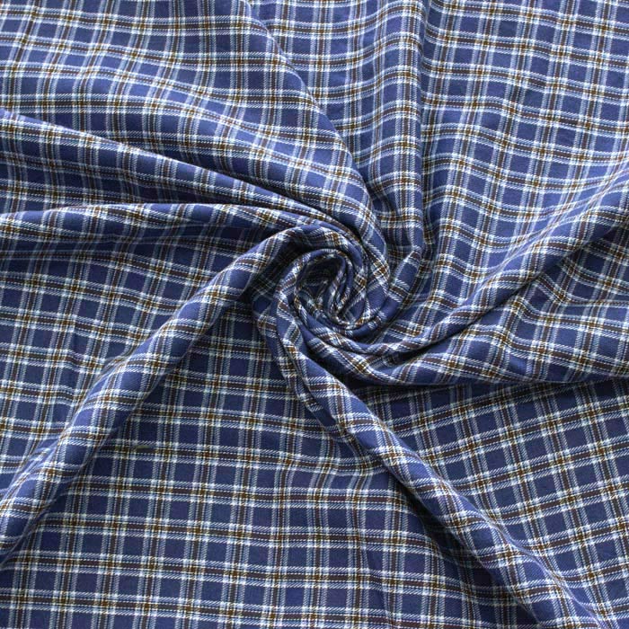 Фланель представляет собой плотную и приятную на ощупь хлопковую ткань с небольшим ворсом на лицевой стороне. Полотно соткано из синих, коричневых и белых нитей, образующих мелкую клетку. Благодаря составу из 100% хлопка фланель в клетку гипоаллергенна, гигроскопична и воздухопроницаема. Сорочечная ткань в клетку обладает такими свойствами, как высокая прочность и долговечность. Рубашечная фланель легко драпируется и хорошо закладывается в складки. Перед раскроем фланели необходима декатировка. Фланель из хлопка подходит для пошива сорочки и рубашки, платья и сарафана, халата, пижамы и домашнего комплекта. Готовые изделия из фланели быстро согревают и удерживают тепло в прохладное время года. Стирка фланелевых вещей рекомендована в машине-автомат на режиме "Хлопок" в воде с t 30-40 градусов. Запрещено вручную тереть фланель и скручивать в процессе отжимания. Глажка утюгом разрешена на режиме "Хлопок" и "Шелк". Сушить готовые изделия только в расправленном виде на плечиках.
