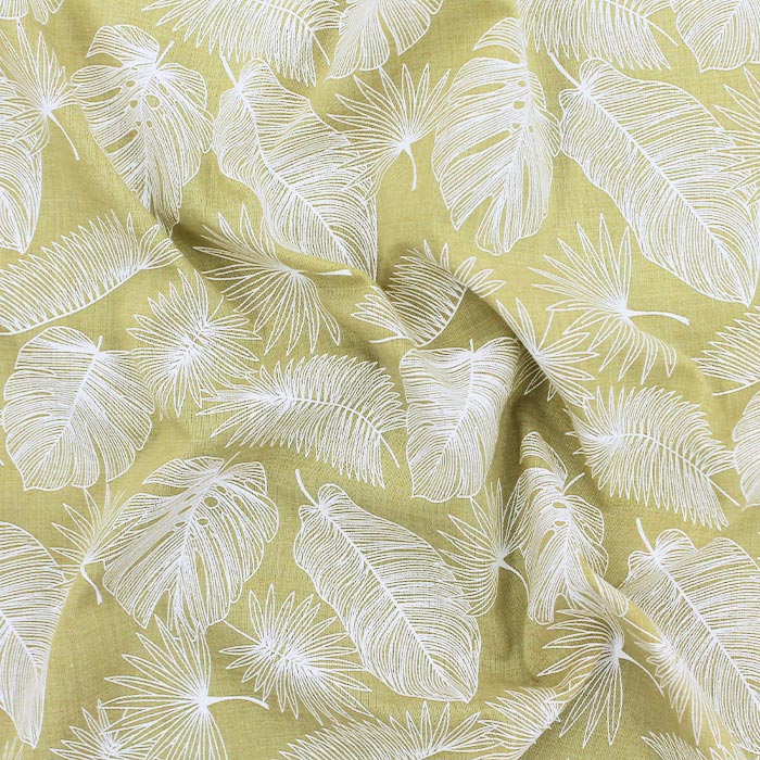 ПЛАТЬЕВАЯ ЛЕН НАБИВНОЙ ш140 85%лен 15%пэ (листья/св.горчица)