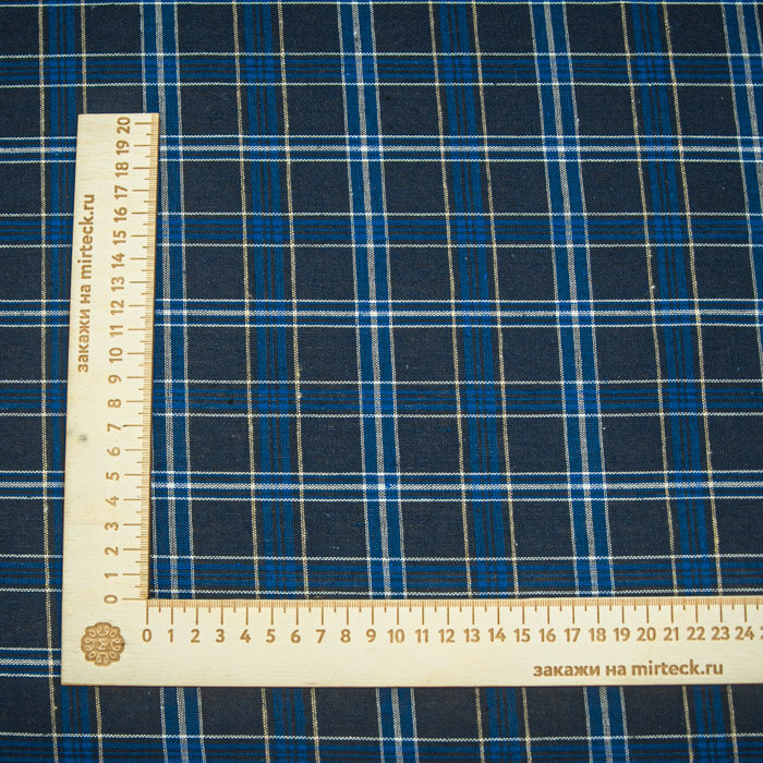 ЛЕН СОРОЧЕЧНЫЙ ш150 80%лен 20%пэ (т.синяя/синяя клетка)