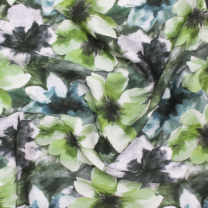 ПЛАТЬЕВАЯ КРЕП НАБИВНОЙ ш140 100%вискоза (цветы/т.морская волна/зеленый)