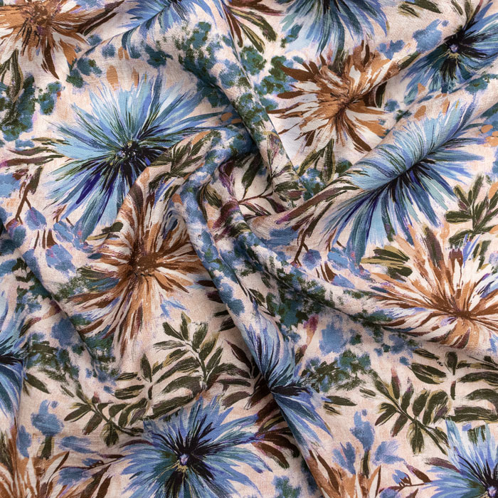 ПЛАТЬЕВАЯ КРЕП НАБИВНОЙ ш140 100%вискоза (цветы/бежевый/синий)