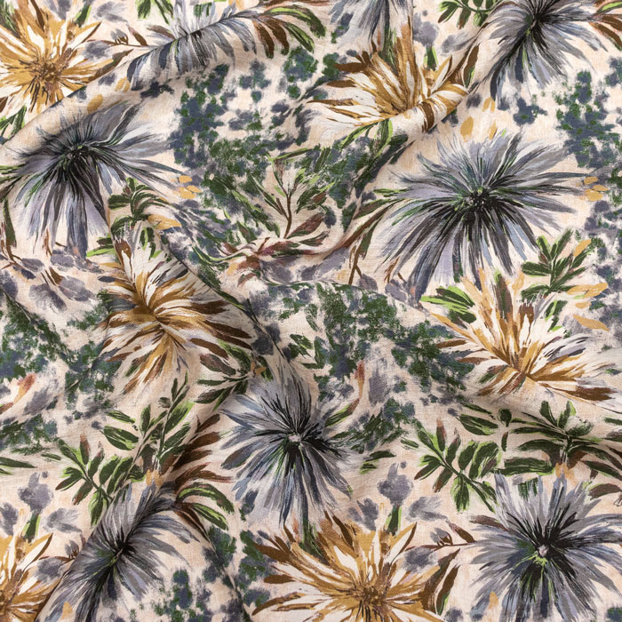 ПЛАТЬЕВАЯ КРЕП НАБИВНОЙ ш140 100%вискоза (цветы/коричневый/серый)