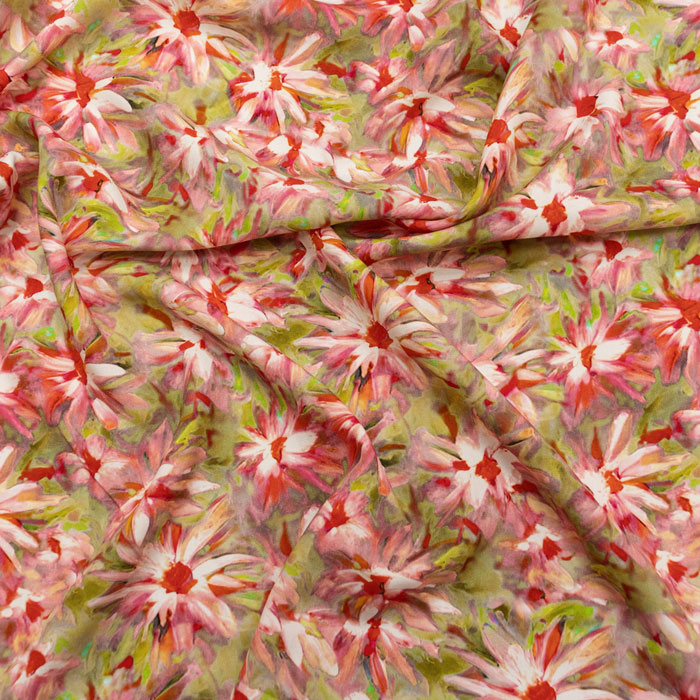 ПЛАТЬЕВАЯ НАБИВНАЯ ВИСКОЗА ш140 100%вискоза (цветы/розовый/оливковый)