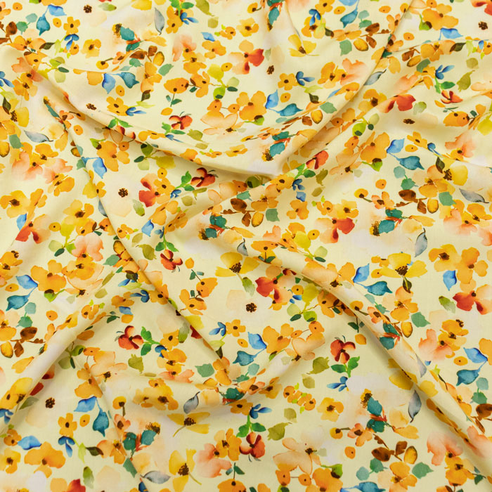 ПЛАТЬЕВАЯ НАБИВНАЯ ВИСКОЗА ш140 100%вискоза (оранжевые цветы)