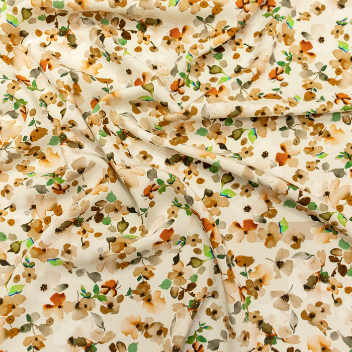 ПЛАТЬЕВАЯ НАБИВНАЯ ВИСКОЗА ш140 100%вискоза (бежево-коричневые цветы)