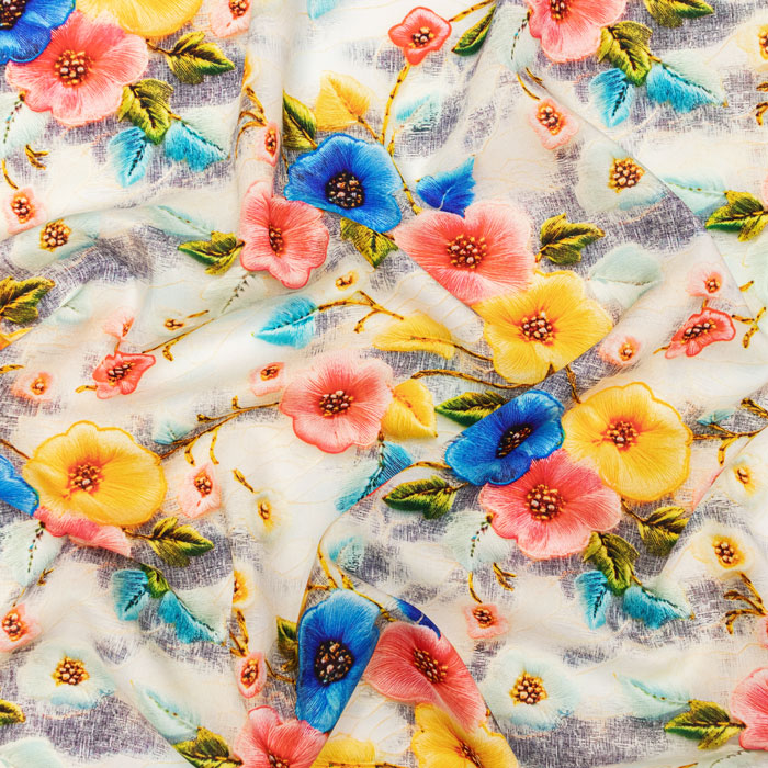 ПЛАТЬЕВАЯ НАБИВНАЯ ВИСКОЗА ш140 100%вискоза (розовый/желтый/синий)