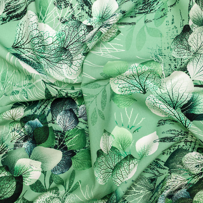ПЛАТЬЕВАЯ НАБИВНАЯ ВИСКОЗА ш140 100%вискоза (листья/мятный)