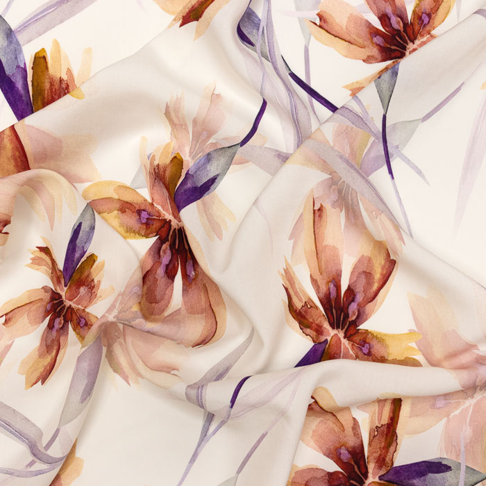 ПЛАТЬЕВАЯ НАБИВНАЯ ВИСКОЗА ш140 100%вискоза (персиково-оранжевые цветы)