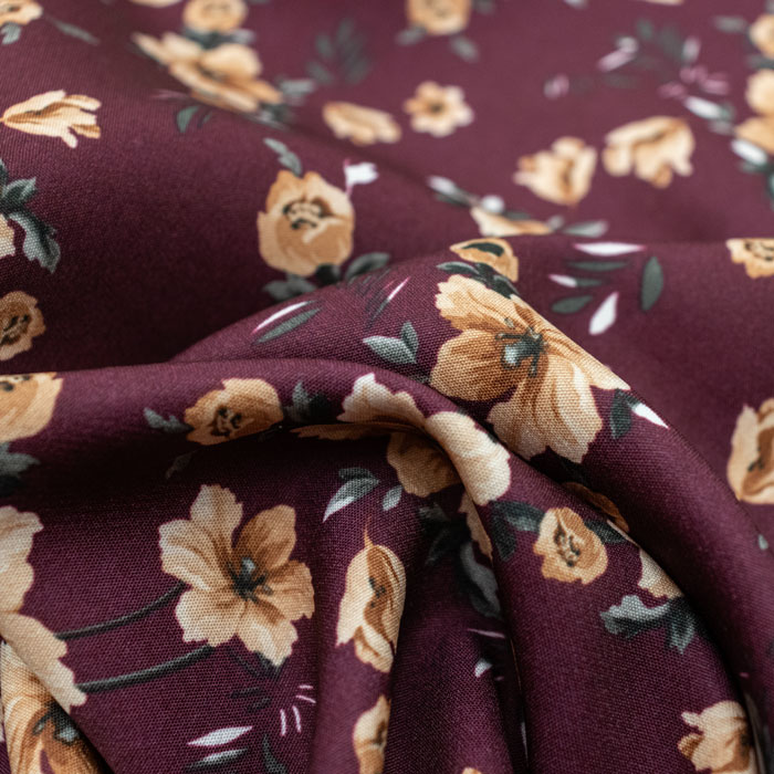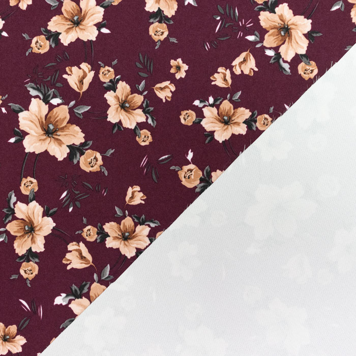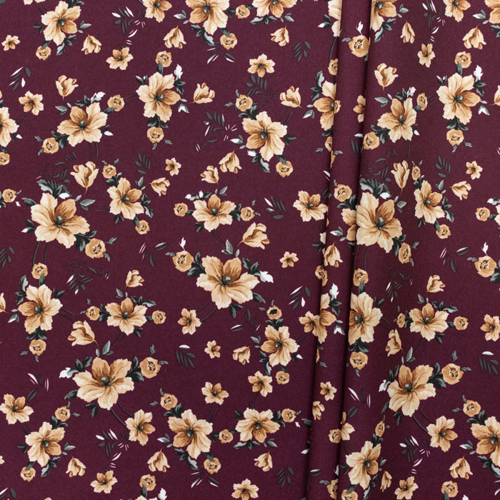 ПЛАТЬЕВАЯ НАБИВНАЯ BARBI ш150 90%пэ 10%спандекс (цветы/т.вишневый фон)