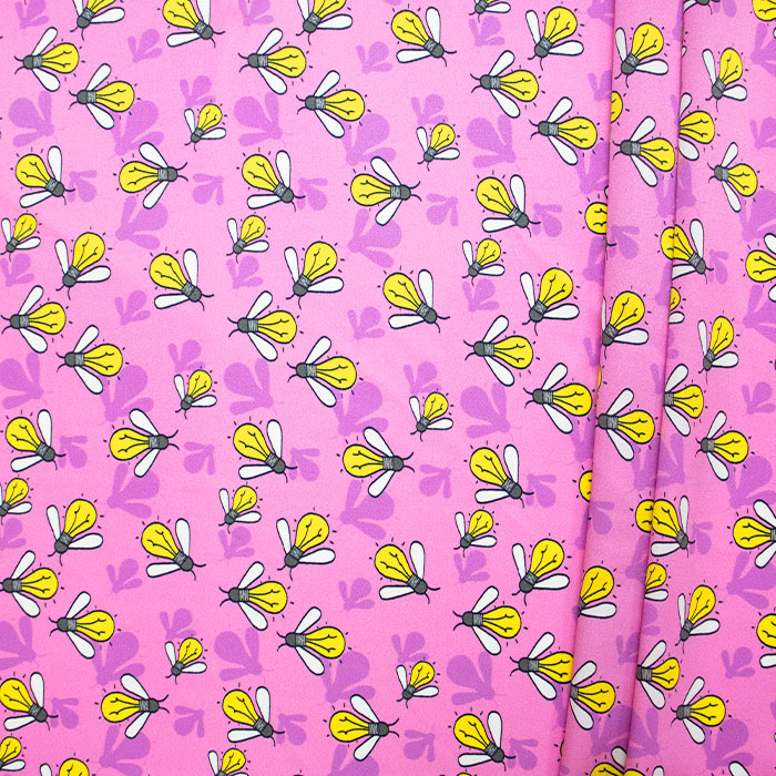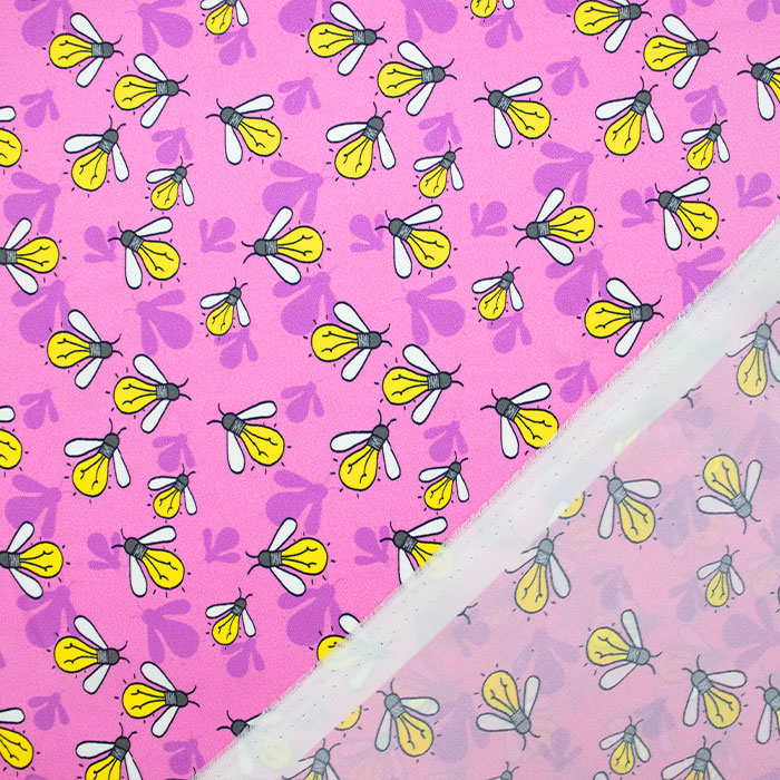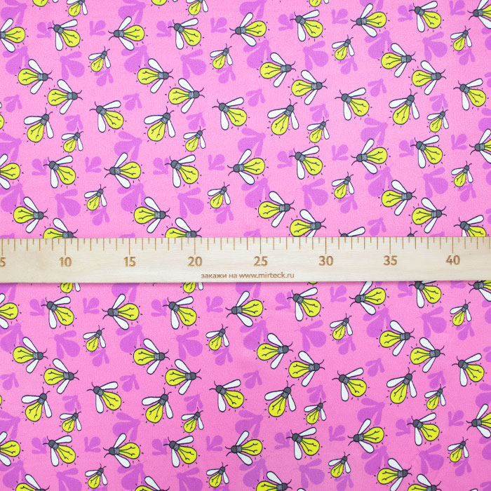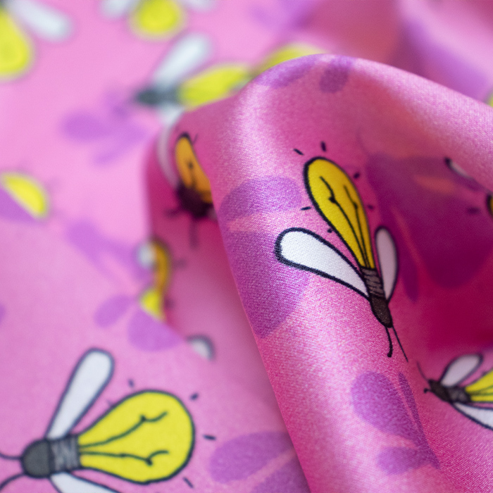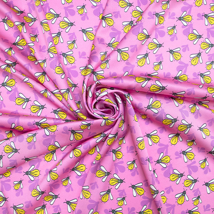 ШЕЛК АТЛАС НАБИВНОЙ ш130 92%шелк 8%эл (пчелы-лампочки/розовый фон)